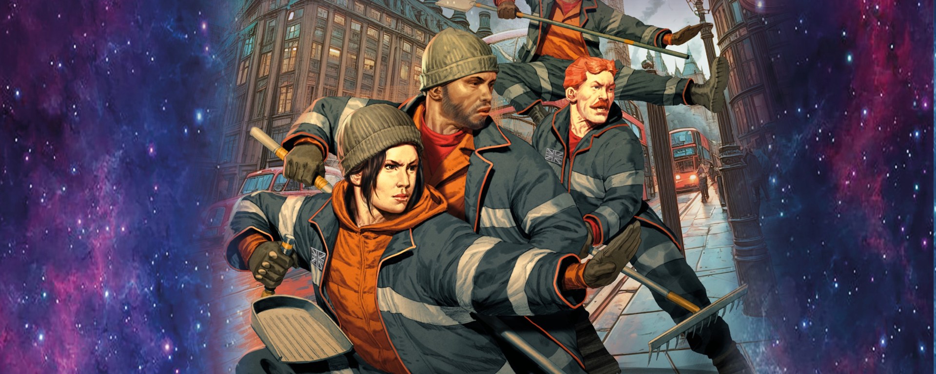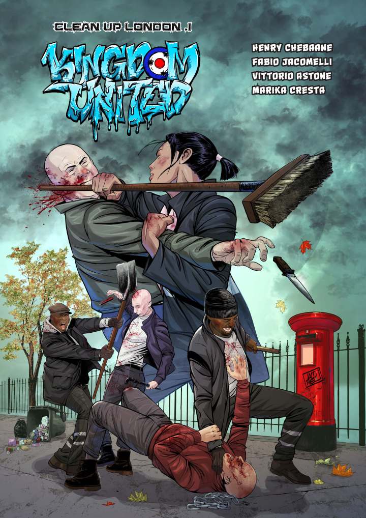 CLEAN UP LONDON is the first book in the series. It is a story in eight chapters, intended to be released as a full graphic novel, early 2026. The first two chapters have been released as an origin story in Spring 2025. It is a limited-edition trade paperback printed in large A4 format, with a gloss laminated cover featuring artwork by Milanese artist Fabio Jacomelli.
